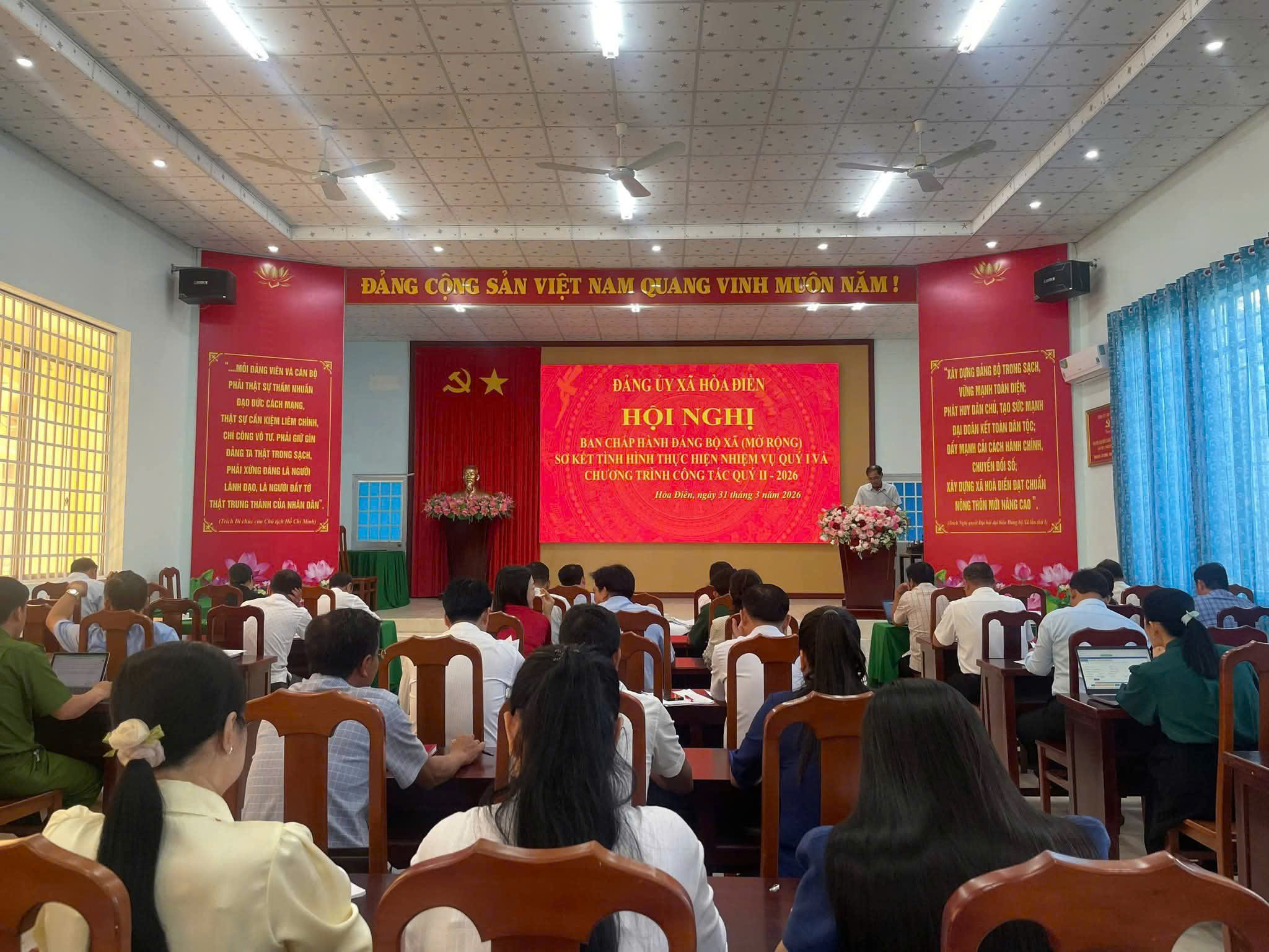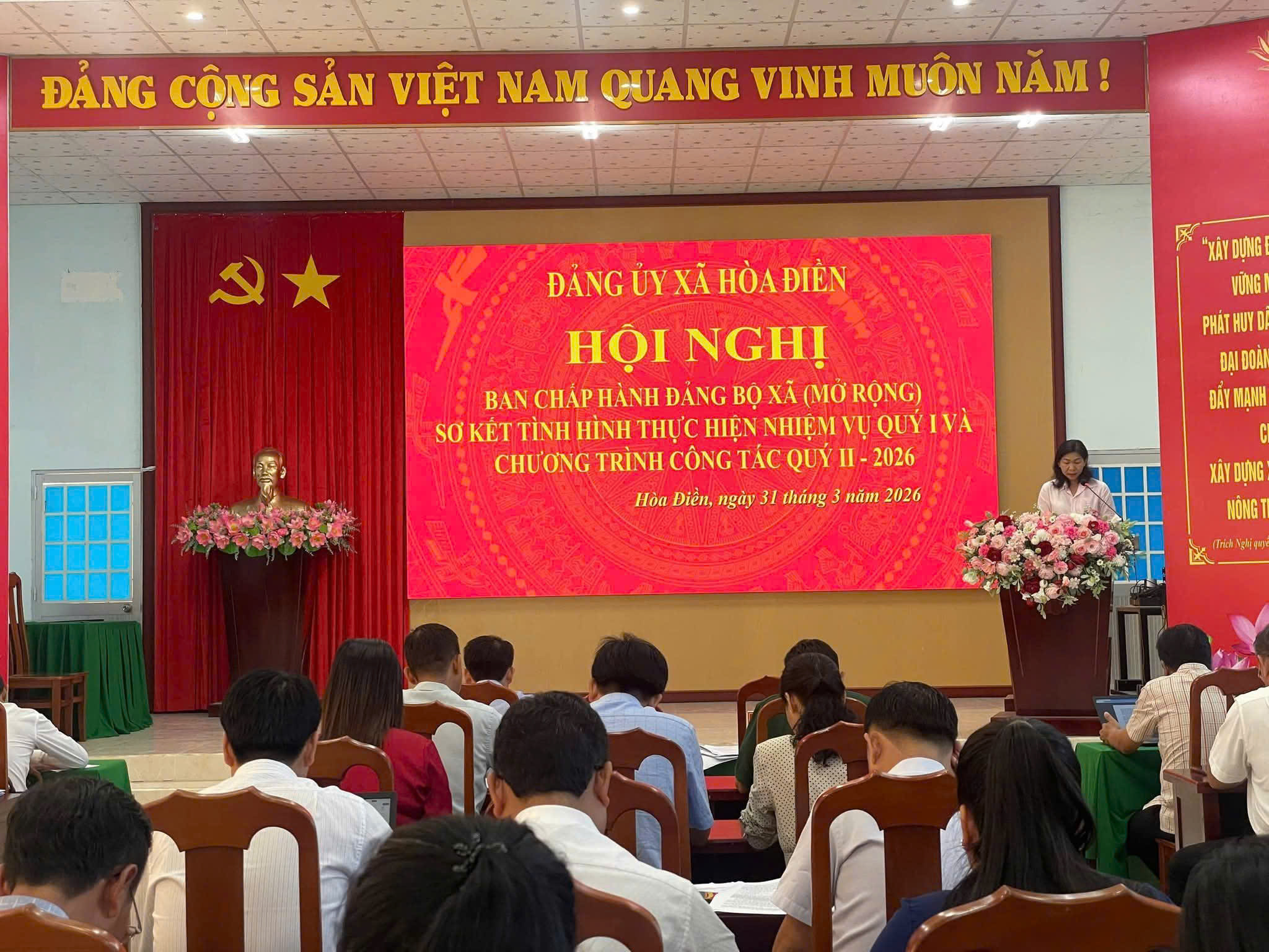 Ngày 31/3, Đảng ủy xã Hòa Điền (tỉnh An Giang) tổ chức Hội nghị Ban chấp hành Đảng bộ xã (mở rộng) để sơ kết tình hình thực hiện nhiệm vụ chính trị quý I và đề ra chương trình công tác quý II/2026. Đồng chí Lê Thanh Hưởng – Bí thư Đảng ủy xã chủ trì hội nghị.