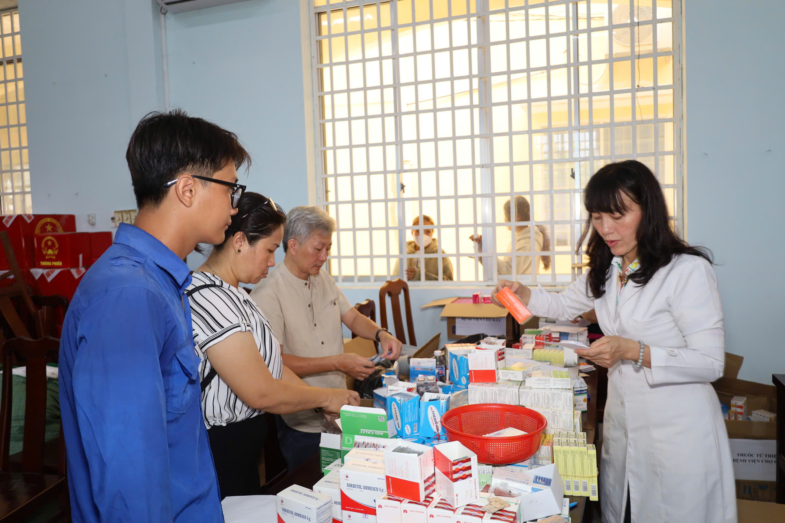 Ảnh. Đoàn khám bệnh từ thiện cấp phát thuốc miễn phí cho bà con Nhân dân trên địa bàn xã.