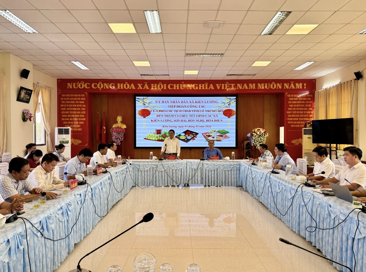 Chiều ngày 3/2, Phó Chủ tịch UBND tỉnh An Giang Lê Trung Hồ làm Trưởng Đoàn công tác của tỉnh đến thăm, chúc Tết Nguyên đán Bính Ngọ năm 2026 Đảng ủy, UBND các xã: Hòa Điền, Kiên Lương, Sơn Hải, Hòn Nghệ.