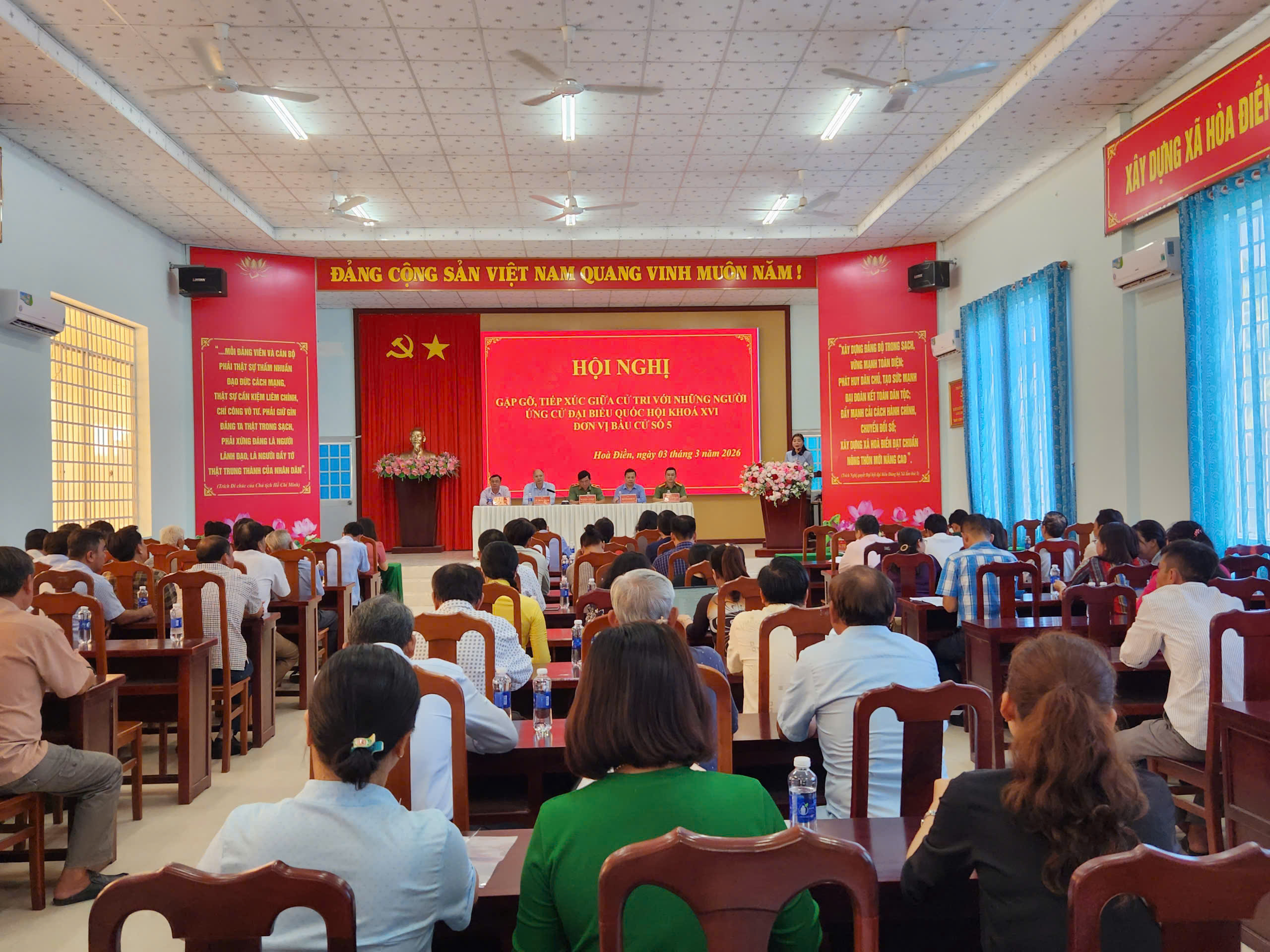 Cử tri xã Hòa Điền bày tỏ sự quan tâm, kỳ vọng đối với các ứng cử viên; đồng thời kiến nghị nhiều nội dung liên quan đến đầu tư hạ tầng giao thông nông thôn; chế độ phụ cấp cho cán bộ, công chức, viên chức và người lao động làm việc tại các xã sau sáp nhập; nâng cao chất lượng y tế, giáo dục, giải quyết việc làm và hỗ trợ sản xuất nông nghiệp. Cử tri mong các ứng cử viên khi trúng cử đại biểu Quốc hội sẽ thường xuyên giữ mối liên hệ chặt chẽ với cử tri, kịp thời phản ánh tâm tư, nguyện vọng của Nhân dân đến Quốc hội và các cơ quan chức năng.