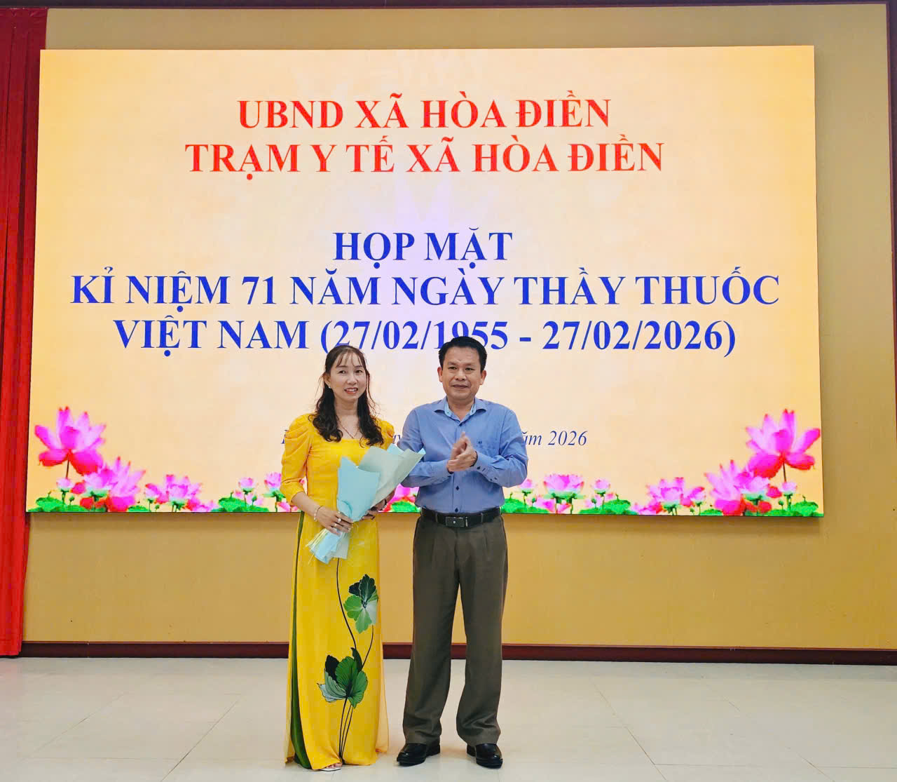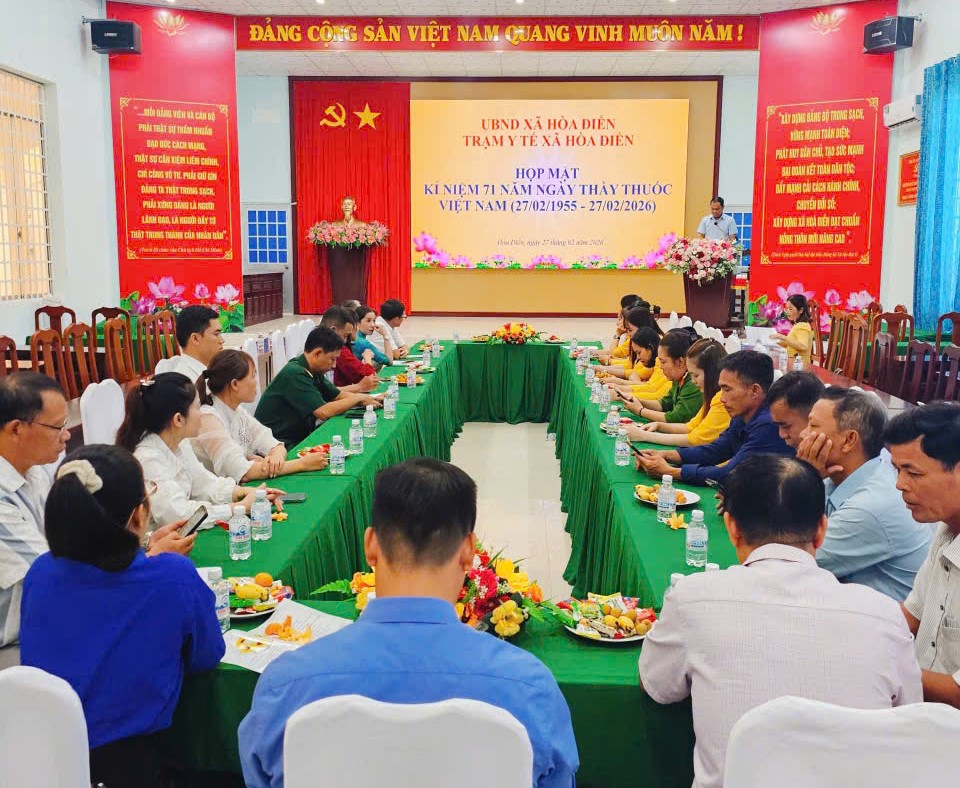 Chiều ngày 27/2, Trạm Y tế xã Hòa Điền đã tổ chức Họp mặt kỷ niệm 71 năm Ngày Thầy thuốc Việt Nam (27/2/1955 - 27/2/2026). Tham dự buổi họp mặt có đồng chí Lê Thanh Hưởng, Bí thư Đảng ủy xã; đồng chí Hồ Thành Trương, Phó Chủ tịch UBND xã; các đồng chí đại diện lãnh đạo các cơ quan, ban ngành, đoàn thể xã; các đồng chí cán bộ y tế đã nghỉ hưu cùng cán bộ, nhân viên Trạm Y tế và cộng tác viên y tế xã.