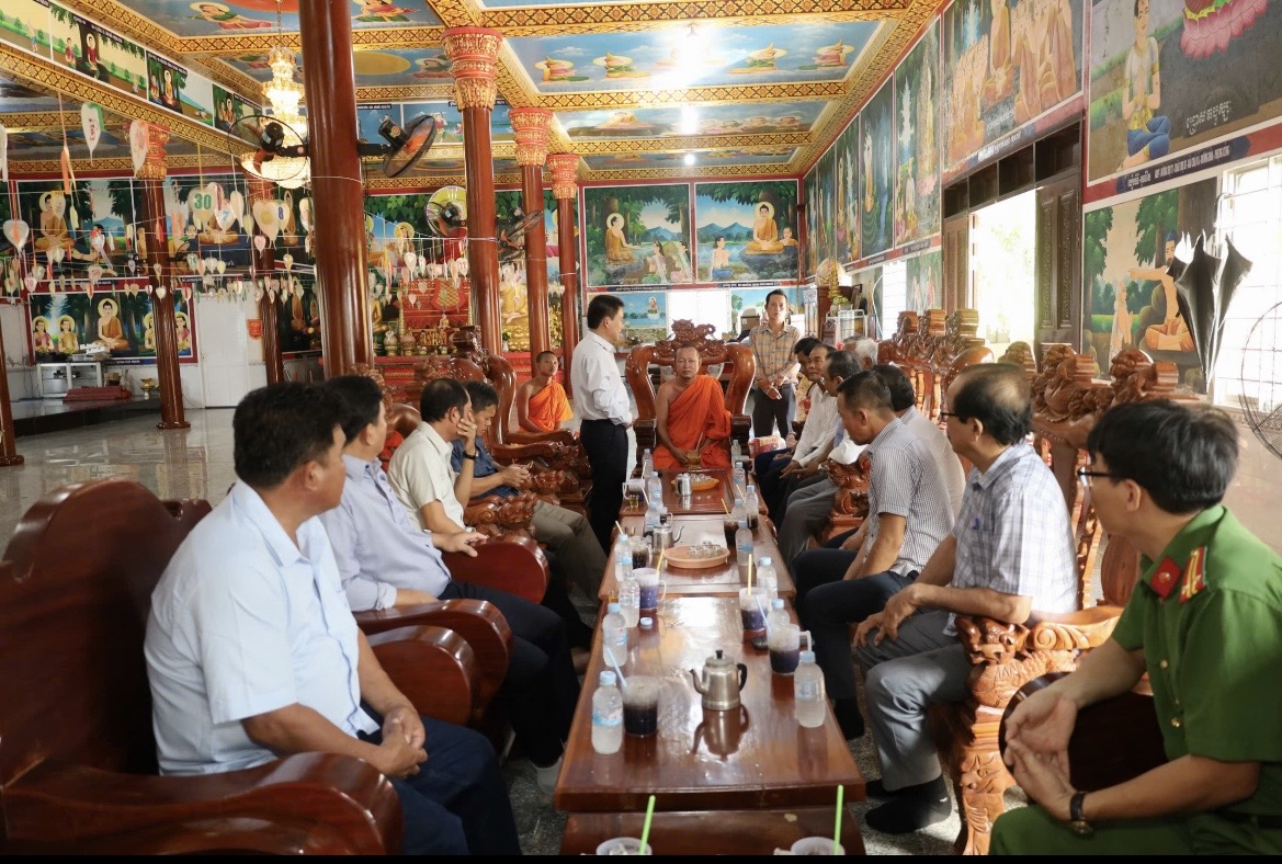 Tại nơi đến thăm, thay mặt lãnh đạo xã đồng chí Lê Thanh Hưởng – Bí thư Đảng ủy xã đã thông tin về kết quả thực hiện nhiệm vụ của chính quyền xã sau khi thực hiện mô hình chính quyền địa phương 2 cấp từ ngày 01/7/2025. Đồng thời gửi lời thăm hỏi và chúc mừng năm mới 2026 đến các các vị hòa thượng, thượng tọa, đại đức, achar, gia đình chính sách và bà con đồng bào Khmer trên địa bàn, chúc bà con đồng bào Khmer đón tết vui tươi, an toàn, tiết kiệm.