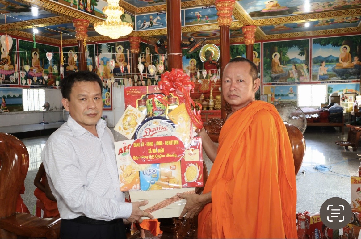 Nhân dịp Tết Chôl Chnăm Thmây của đồng bào dân tộc Khmer, sáng ngày 14/4, Đoàn Lãnh đạo xã Hòa Điền do đồng chí Lê Thanh Hưởng – Bí thư Đảng ủy xã làm trưởng đoàn đến thăm, chúc tết và tặng quà chùa Núi Trầu và bà con đồng bào Khmer tiêu biểu trên địa bàn.