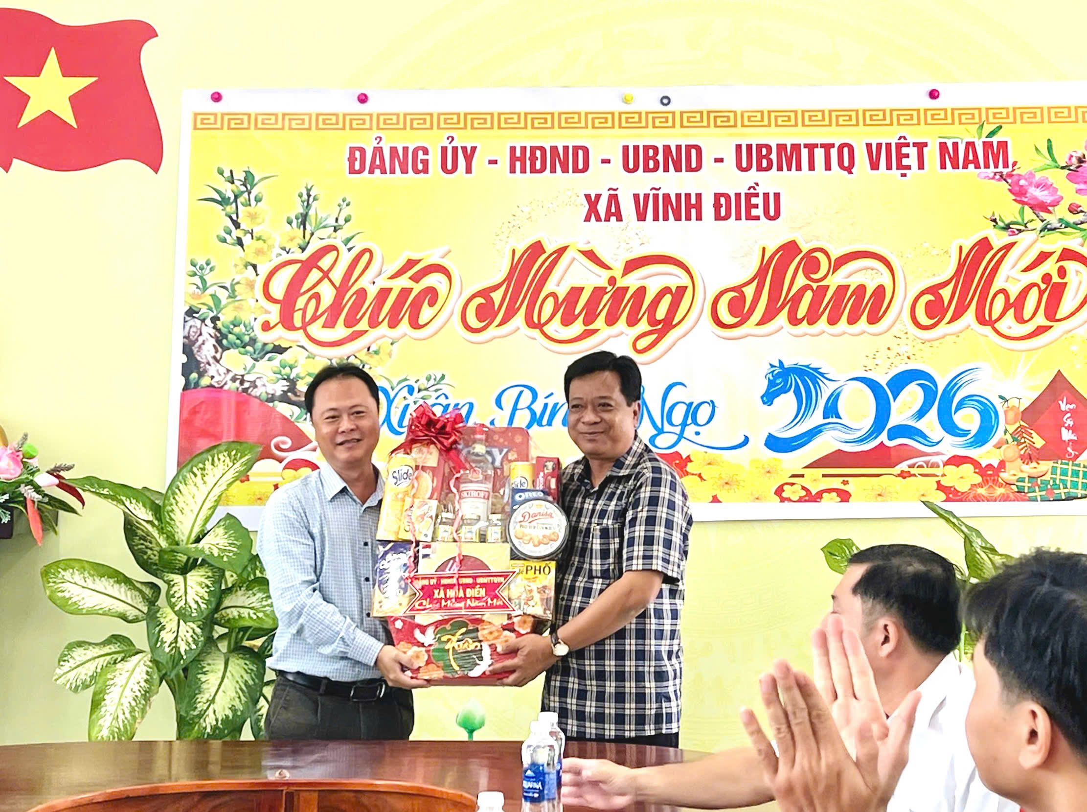 Tại các nơi đến thăm, thay mặt đoàn công tác đồng chí Võ Quang Phúc, Phó Bí thư Đảng ủy, Chủ tịch UBND xã đã Thông tin tình hình phát triển kinh tế, văn hóa - xã hội, quốc phòng – an ninh của xã Hòa Điền đạt được trong năm 2025. Nhân dịp năm mới Bính ngọ năm 2026, đồng chí chúc Đảng bộ, chính quyền và Nhân dân 02 xã Giang thành, xã Vĩnh Điều năm mới an khang thịnh vượng, vạn sự như ý, thành công mới...
