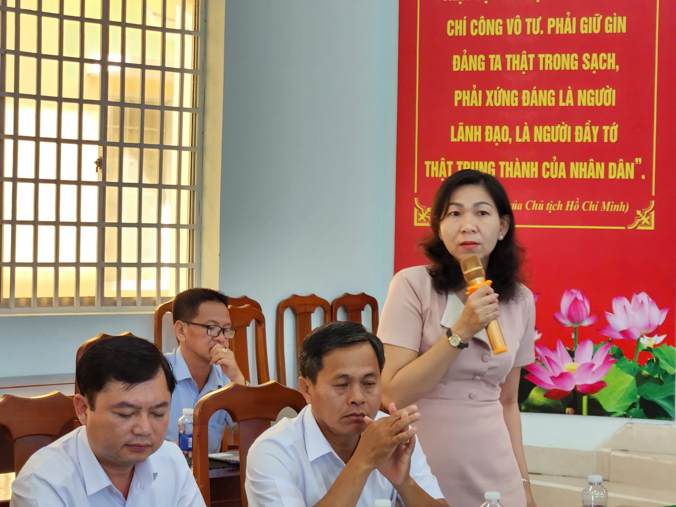 Đồng chí Nguyễn Thị Mỹ Nhung, Phó Bí thư Thường trực Đảng ủy – Chủ tịch HĐND xã phát biểu tại Hội nghị.